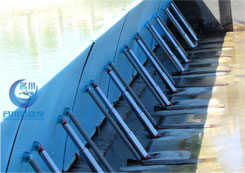 橡膠壩使用壽命短(橡膠壩采用的是再生橡膠原料,壩袋易老化,容易被上游漂浮物或尖銳物損壞,從而降低使用壽命);運行管理難度大(洪水過后一旦壩面淤積較厚,要求人工清理,否則壩袋不能正常升起蓄水,增加了后期的人工費用)。充水式橡膠壩冬季冰凍容易損壞壩袋,而充氣式橡膠壩不能調(diào)節(jié)壩高。